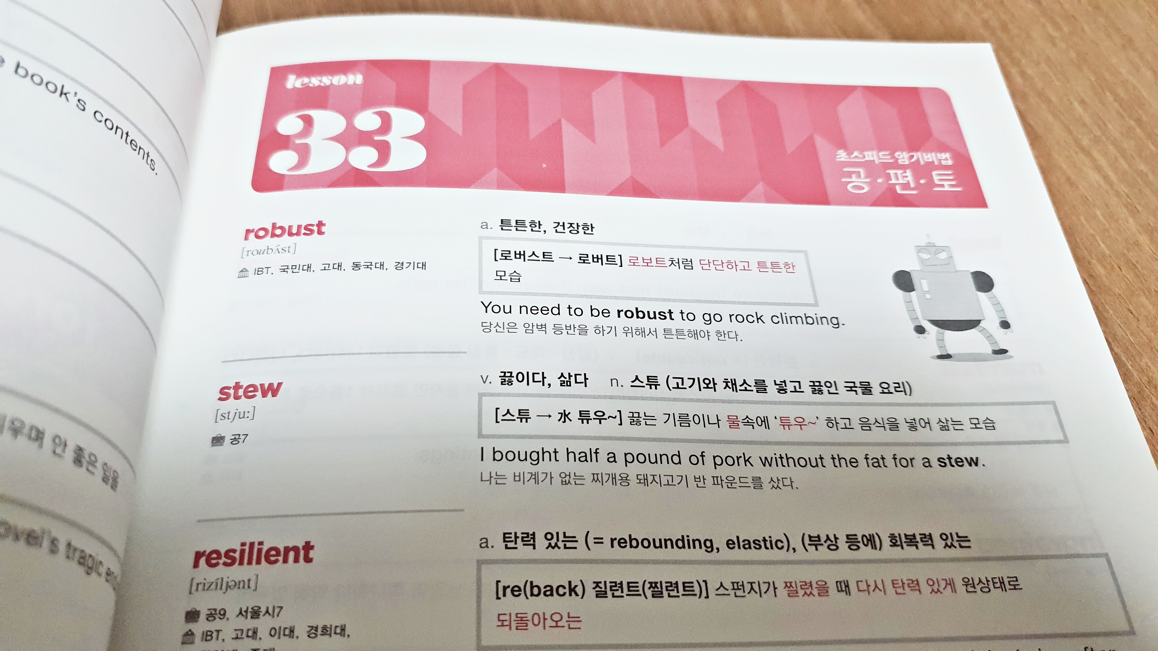 이미 보신분들도 있겠지만 해마학습법이라고 해서 재미있는 그림과 영어발음을 활용한 재미있는 말장난(?)으로 단어를 쉽게 외울 수 있게 구성되어 있습니다. 공편토의 단어 개수는 3,453단어로 확실히 이동기 보카 3000과 비교하면 공편토가 외우기는 훨씬 좋았습니다. 어떻게 보면 되게 유치하고 손발이 오그라드는 내용이긴 한데 그만큼 기억에 남는 것도 더 많았구요. 하지만 공편토는 단어는 있는데 숙어는 거의 없고 업데이트가 해마다 이뤄지는건 아니라서 역시 공편토를 떼고 나시면 이동기 보카 3000, 혹은 본인이 강의를 듣는 수업의 공무원 영어단어책을 꼭 다시 한번 암기하시길 추천드립니다.